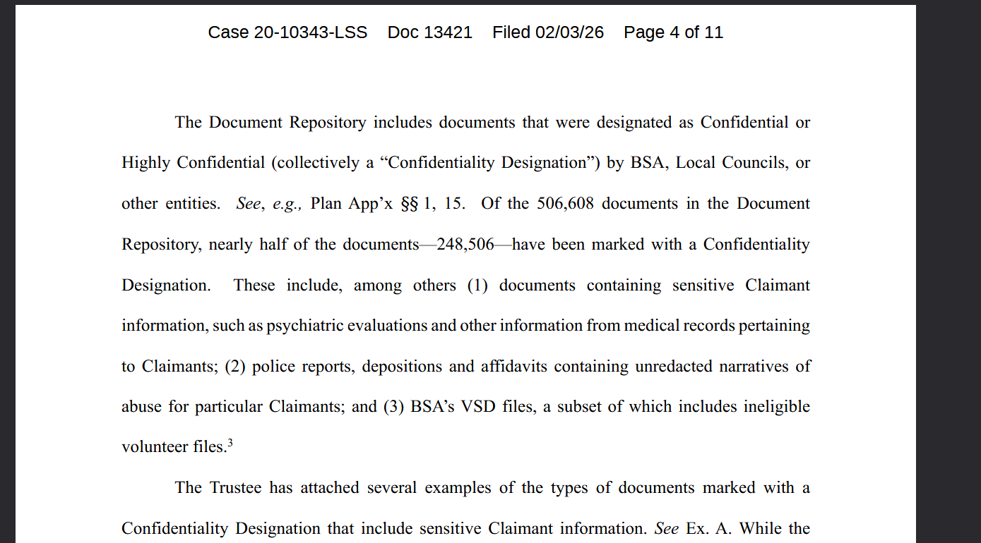I copied the wording from the filing so that we can better understand what is being said. As an unrepresented claimant, this response is very important because I have been asking the Trust if they have copies of all of the original reports of CSA by BSA counsels, because these original reports were never allowed … Read more