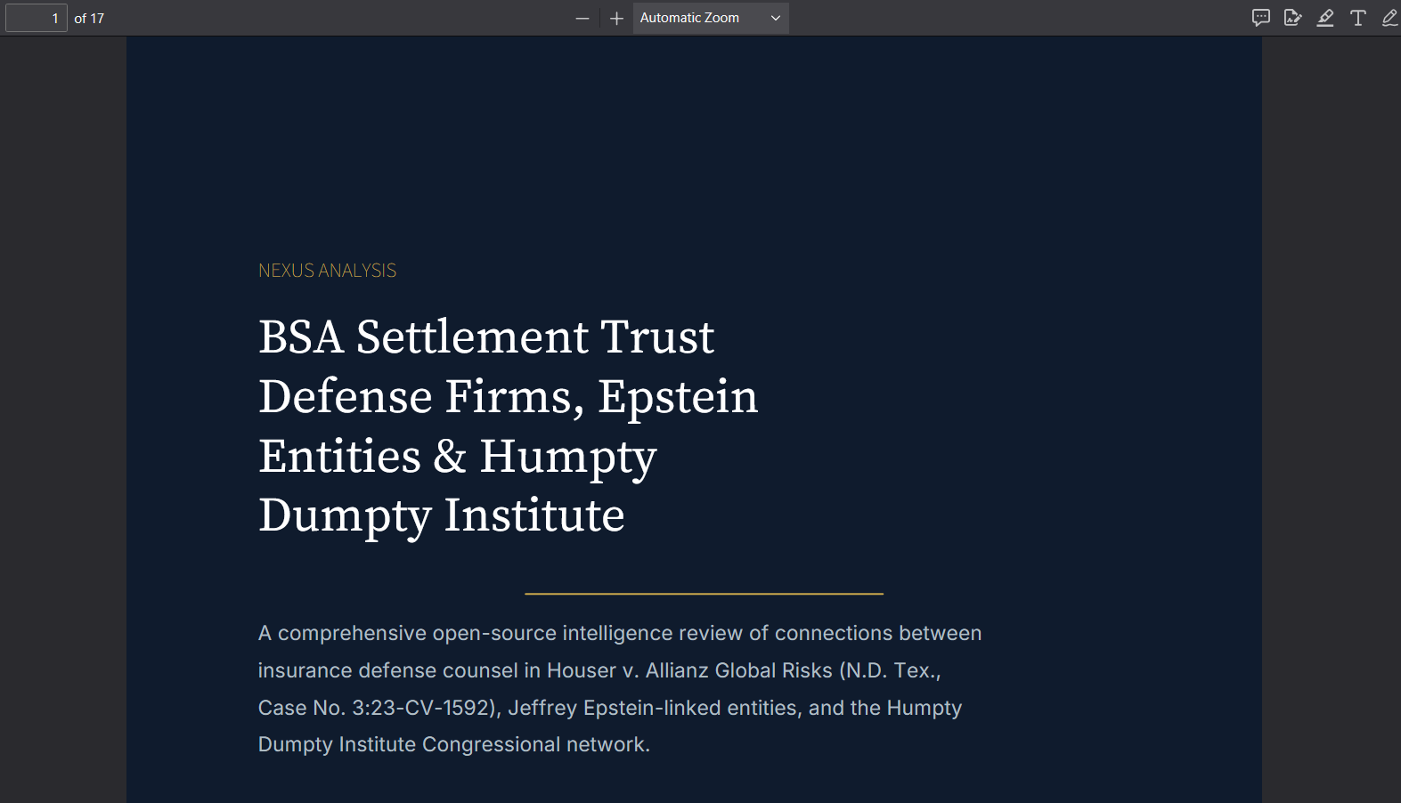 NEXUS ANALYSIS: BSA Settlement Trust Defense Firms, Epstein Entities & Humpty Dumpty Institute