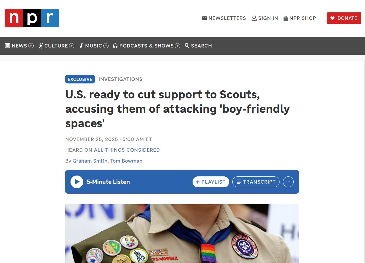 “U.S. ready to cut support to Scouts, accusing them of attacking ‘boy-friendly spaces’